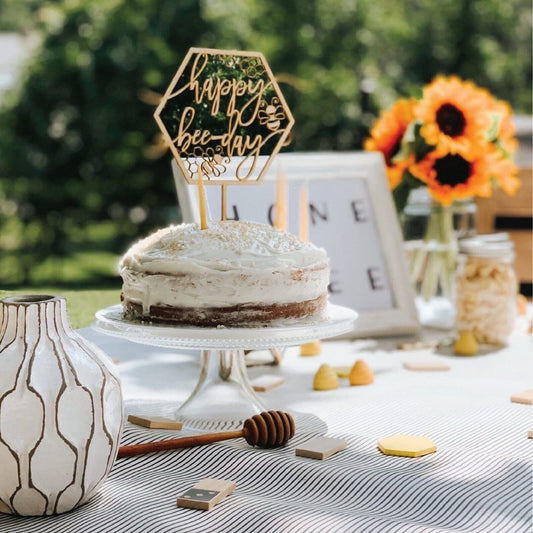 Happy Bee Day Wood Cake Topper