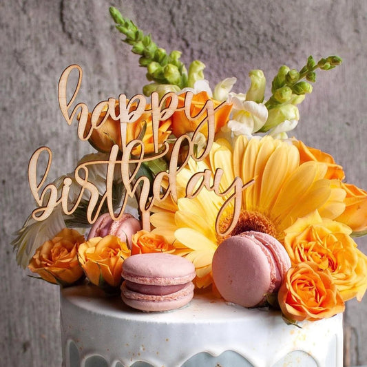 Happy Birthday Wood Cake Topper