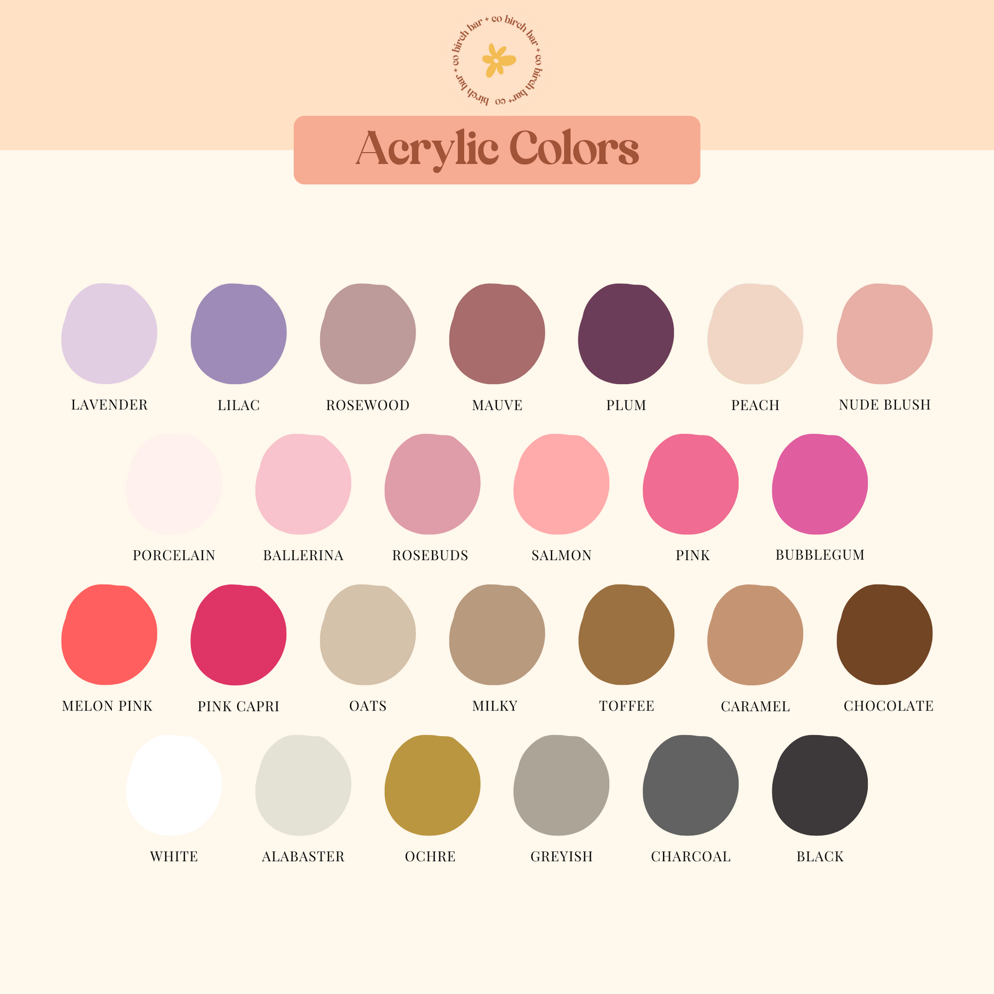 Choose your name acrylic color from the color charts.